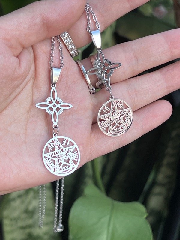 2 collares con dije nudo súper protector
