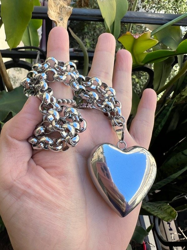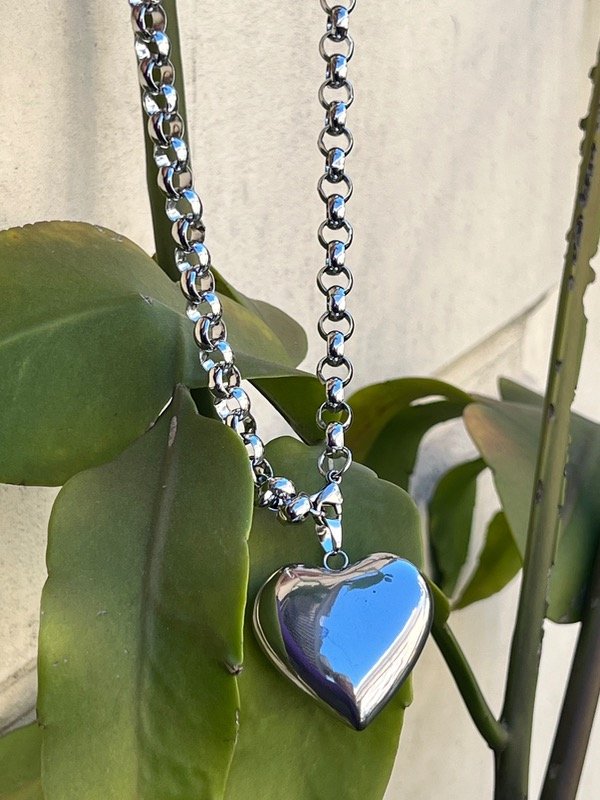 2 collares rolo de acero corazón