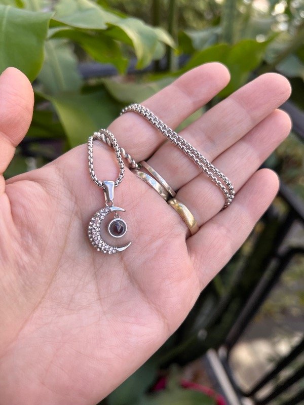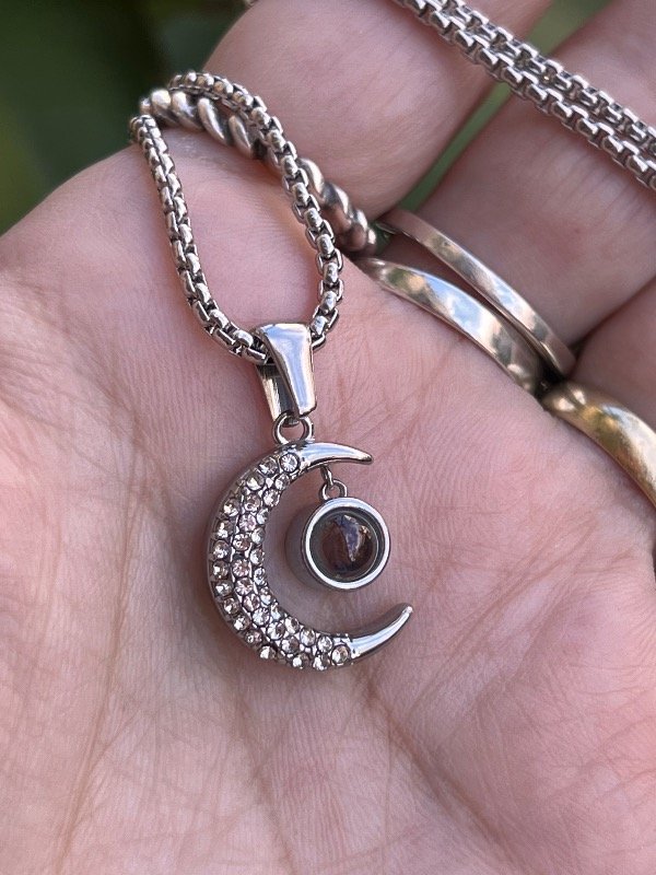 Collar de acero Luna con lupa te amo en mil idiomas